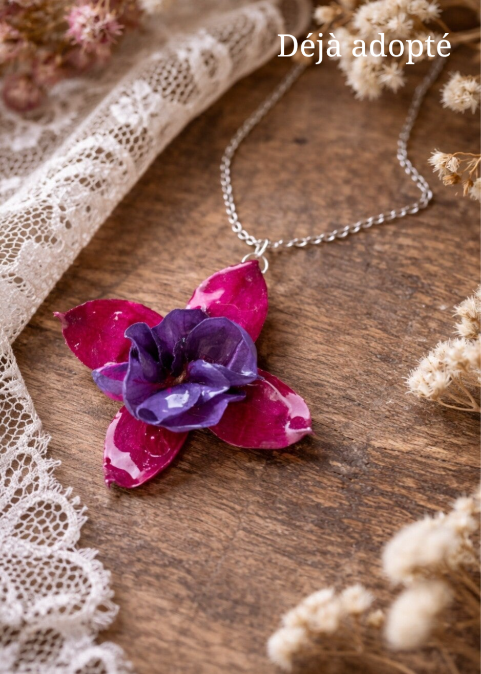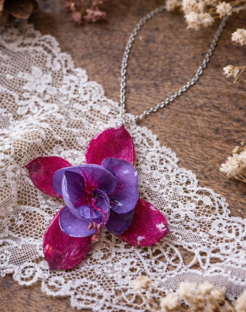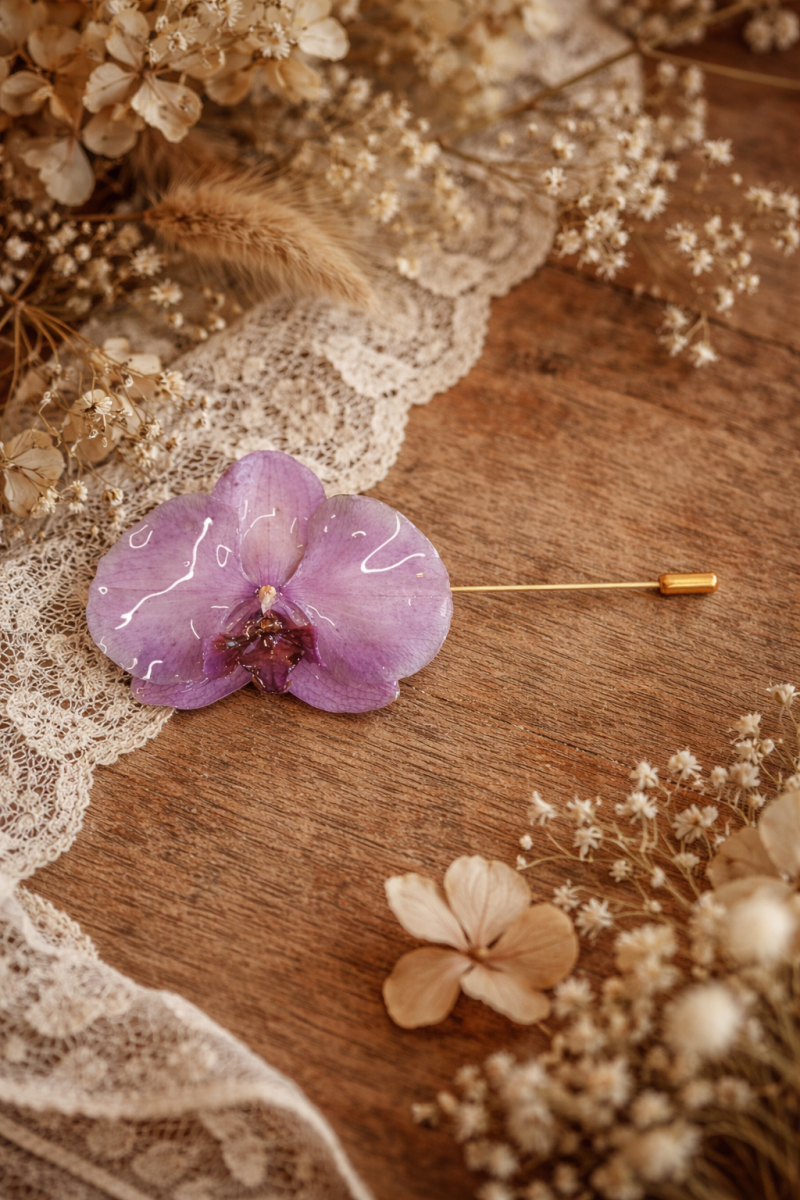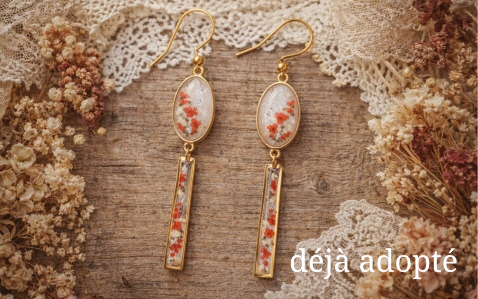 Chacune de mes créations est le fruit d'un processus minutieux, où les fleurs séchées sont soigneusement sélectionnées.