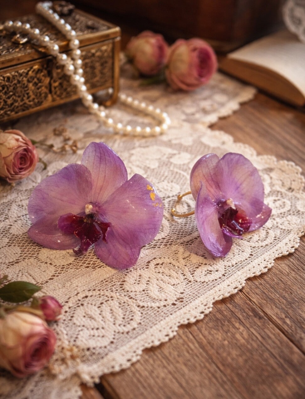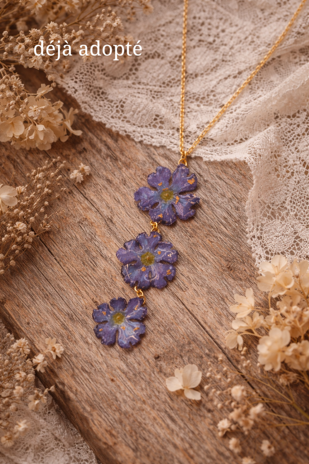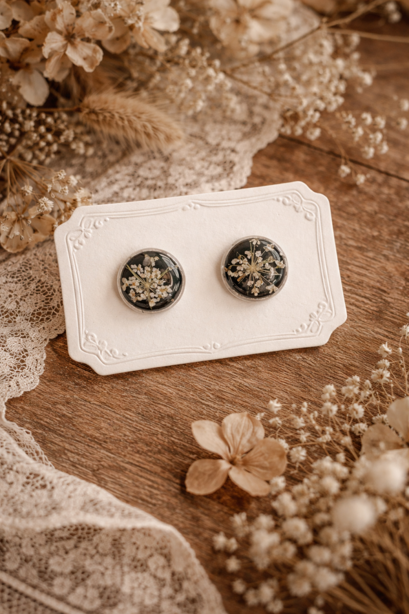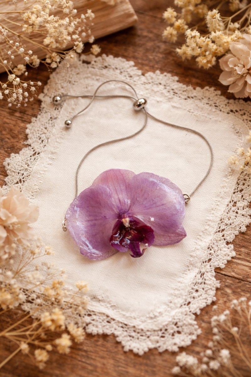Chacune de mes créations est le fruit d'un processus minutieux, où les fleurs séchées sont soigneusement sélectionnées.