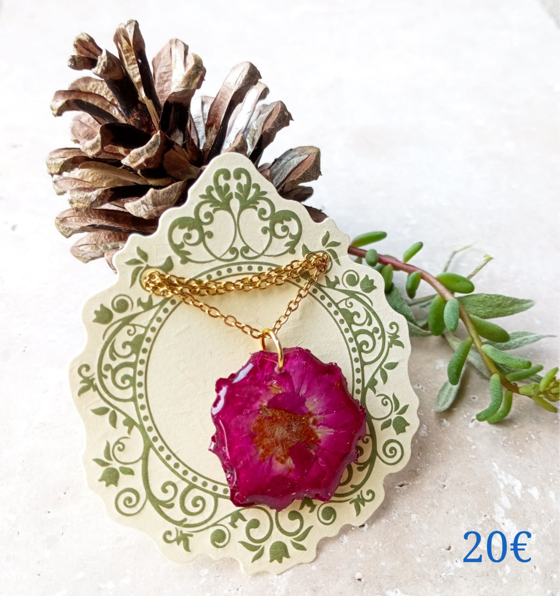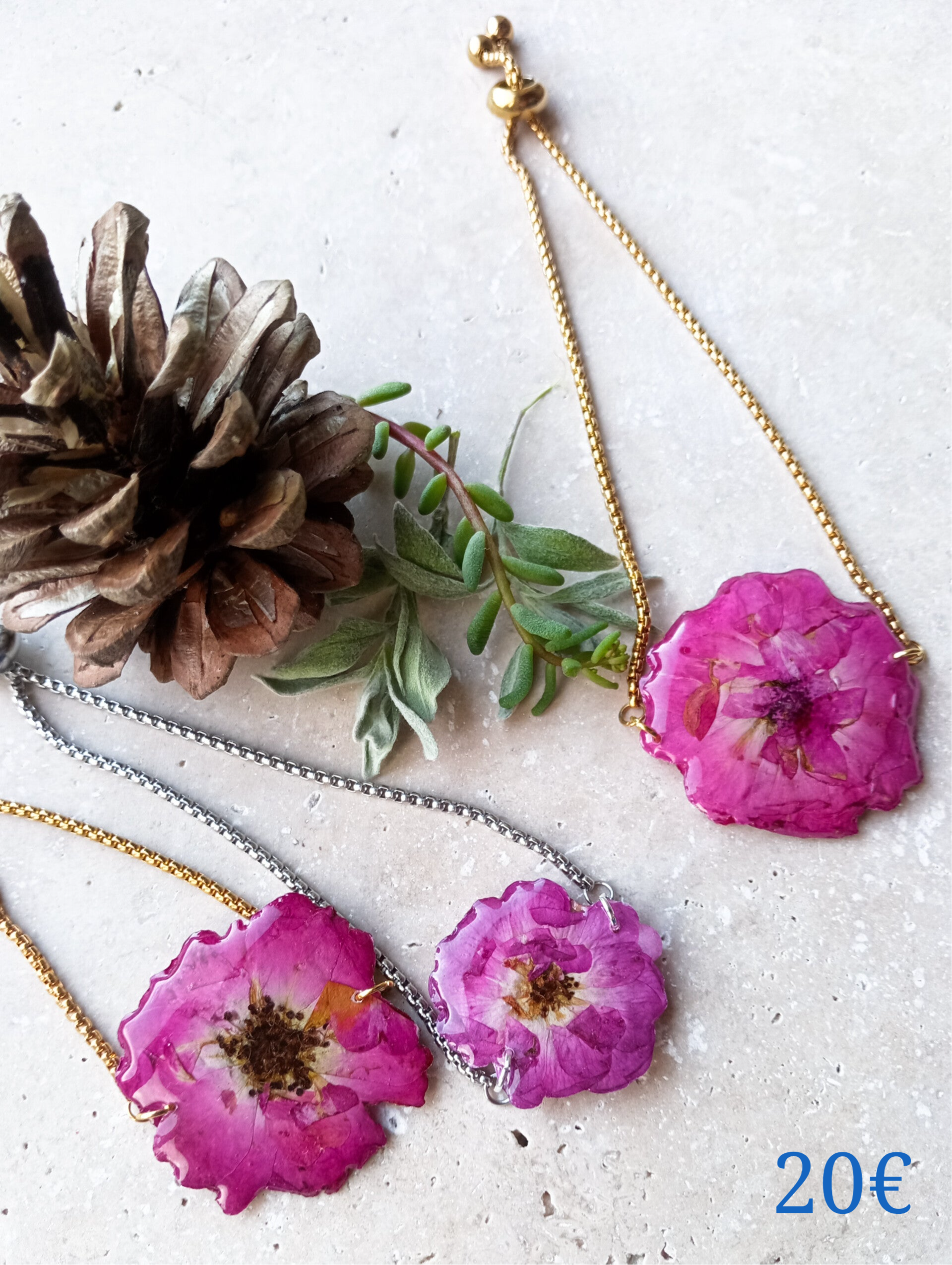 Découvrez une collection de bijoux conçus à partir de véritables fleurs de fuchsia, délicatement séchées tout en conservant leur forme initiale. Chaque pièce est unique et met en lumière la beauté singulière de cette fleur aux courbes élégantes.