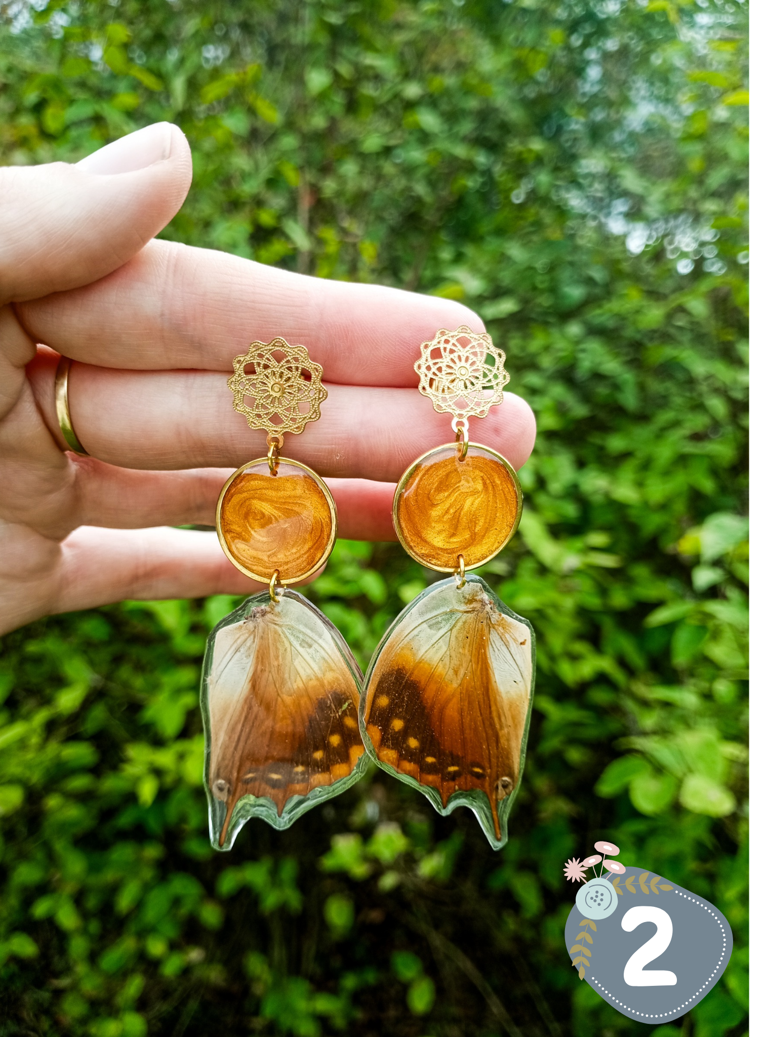 Ces boucles d'oreilles sont réalisées à partir d'ailes de papillon naturel, récupérées après leur fin de vie naturelles.